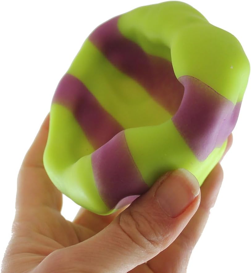 INCLUDES 1 RANDOM COLOR BALL - This stress toy is so fun to manipulate. This ball is filled with a fine granular sand filling surrounded by a soft and stretchy silicone shell. This makes the ball moldable and irresistible since you can squeeze, poke, pull, stretch and bend it, it will stay in that position. Smash it flat and bring it back to its original shape. The 2.5" ball makes a loud crunchy sound when you squeeze it making it a fun auditory toy.