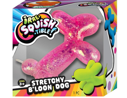 INCLUDES 1 RANDOM COLOR - The balloon dog shape style of the sugar ball is so fun to play with. These soft and flexible toys look like little balloon animal dogs. These little toys can be stretched gently. Dogs are 3" tall, 4" long, and 1.5" thick and is wrapped in a clear plastic box. The dogs comes in 3 different colors with sparkly glitter inside including blue, pink, and purple. This is a very fun stress toy that is not only calming, but it also helps build hand and finger muscles and bilateral coordination. It is beyond amazing and has a super soft dough feel. You can poke and pinch it and it will retain its shape, then slowly ooze back into a cube just like a slow rise squishy would.